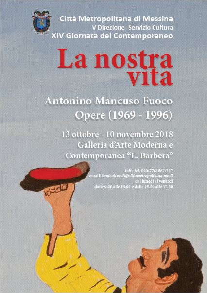 In occasione della XIV edizione della Giornata del Contemporaneo, la Città Metropolitana di Messina, per promuovere la conoscenza dell’arte del nostro tempo, ha organizzato una mostra di opere di Antonio Mancuso Fuoco. Un importante itinerario composto da 30 dipinti, dal titolo “La nostra vita. Opere 1969-1996”, che è stato inaugurato, il 13 ottobre, dalle figlie dell’artista, Maria Giacoma e Silvana alla presenza della Dirigente del settore cultura, avv. Anna Maria Tripodo, della dott.ssa Angela Pipitò, direttrice della Galleria d’Arte Moderna e Contemporanea “Lucio Barbera”, del Dirigente della Sovrintendenza dott. Luigi Giacobbe e di un numeroso pubblico di ammiratori delle opere del Pittore di Capizzi. I quadri sono stati messi a disposizione dalla famiglia Mancuso Fuoco, ma tanti altri sono “in giro” per l’Europa e alcuni sono diventati patrimonio di prestigiosi musei. Manca, però, la catalogazione di tutte le opere per avere una visione complessiva della vita artistica di un uomo che ha seguito con straordinaria forza e caparbietà la via dell’arte.
